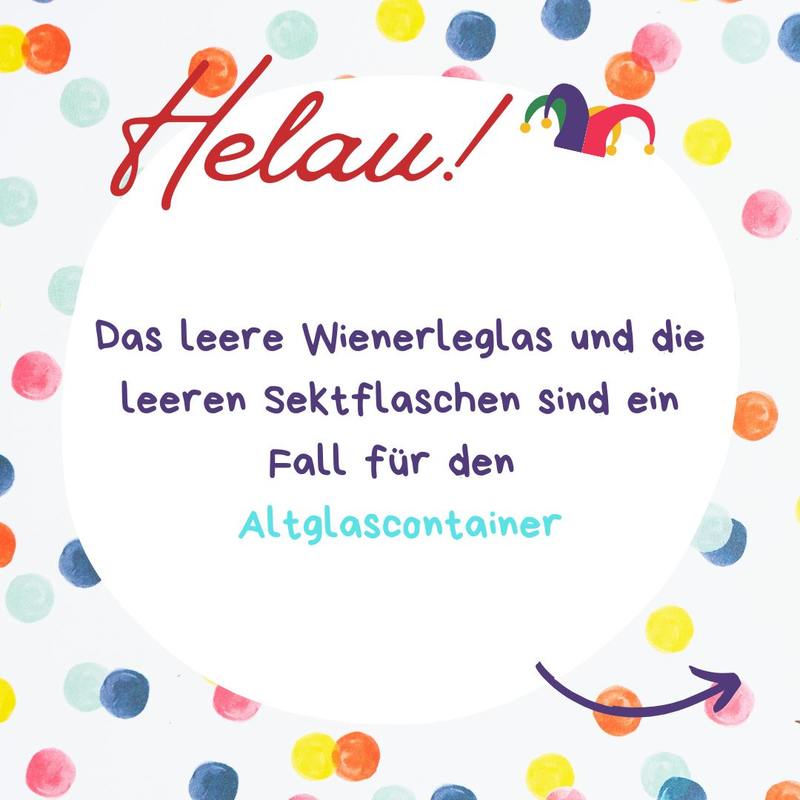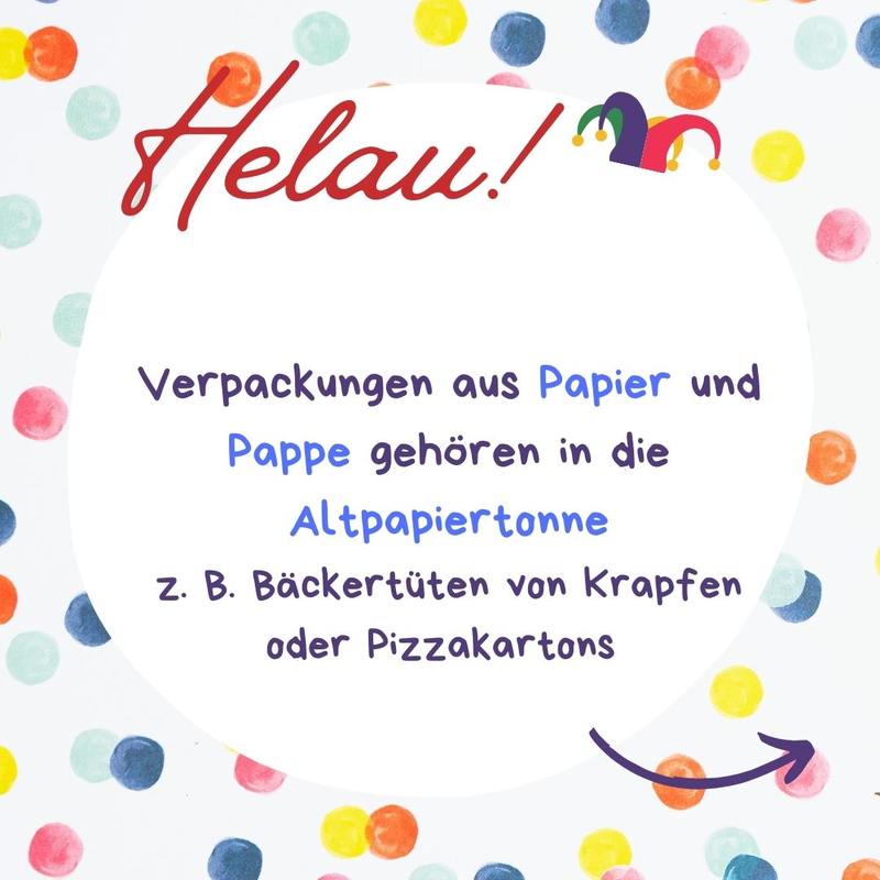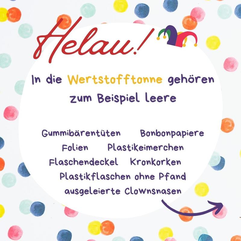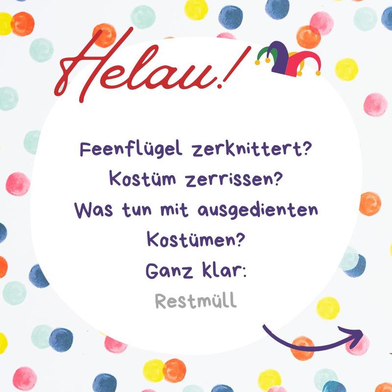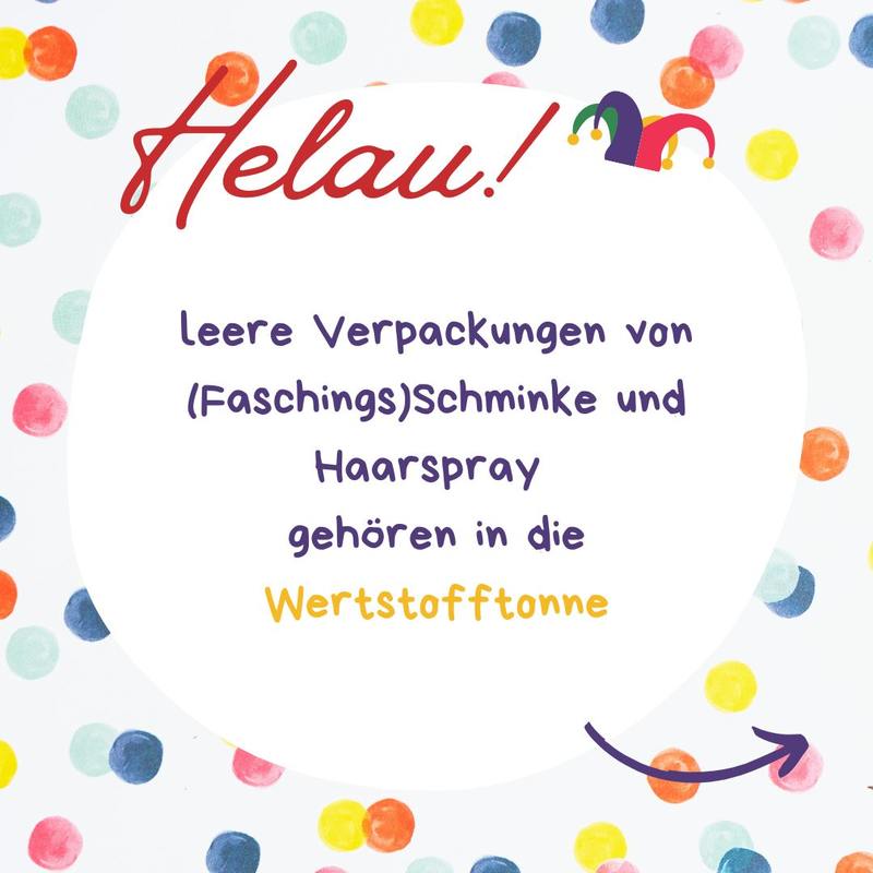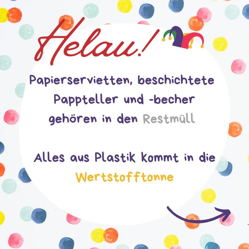 Zurück zur Übersicht 10.02.2026 Helau! Ahoi! Alaaf! Wohin mit dem Faschingsmüll? Wohin mit der Schokokuss-Schachtel, der Sektflasche und der Faschingsschminke?Alle Infos rund um den Faschingsmüll finden Sie hier!